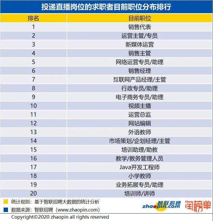 近日,智聯(lián)招聘攜手淘榜單共同發(fā)布的《2020 年春季直播產(chǎn)業(yè)人才報告》顯示,
